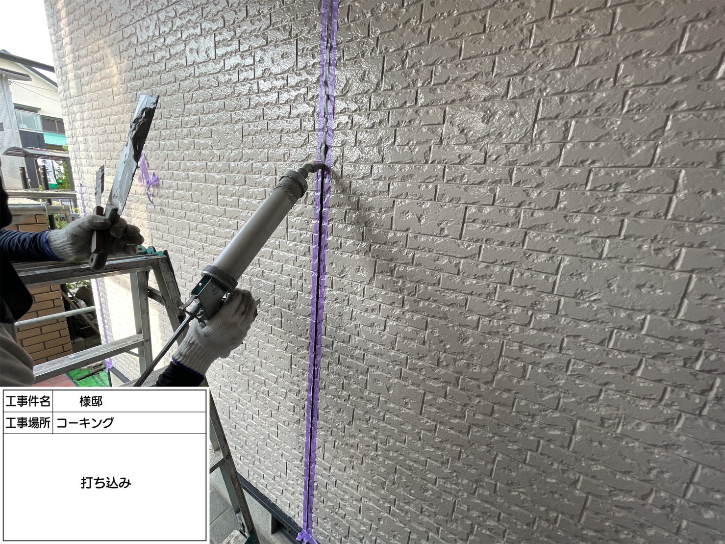 定期的なメンテナンスが必要となるコーキングは打ち替えが基本で、古いコーキングを一度撤去した後に新しいコーキングを注入しています。