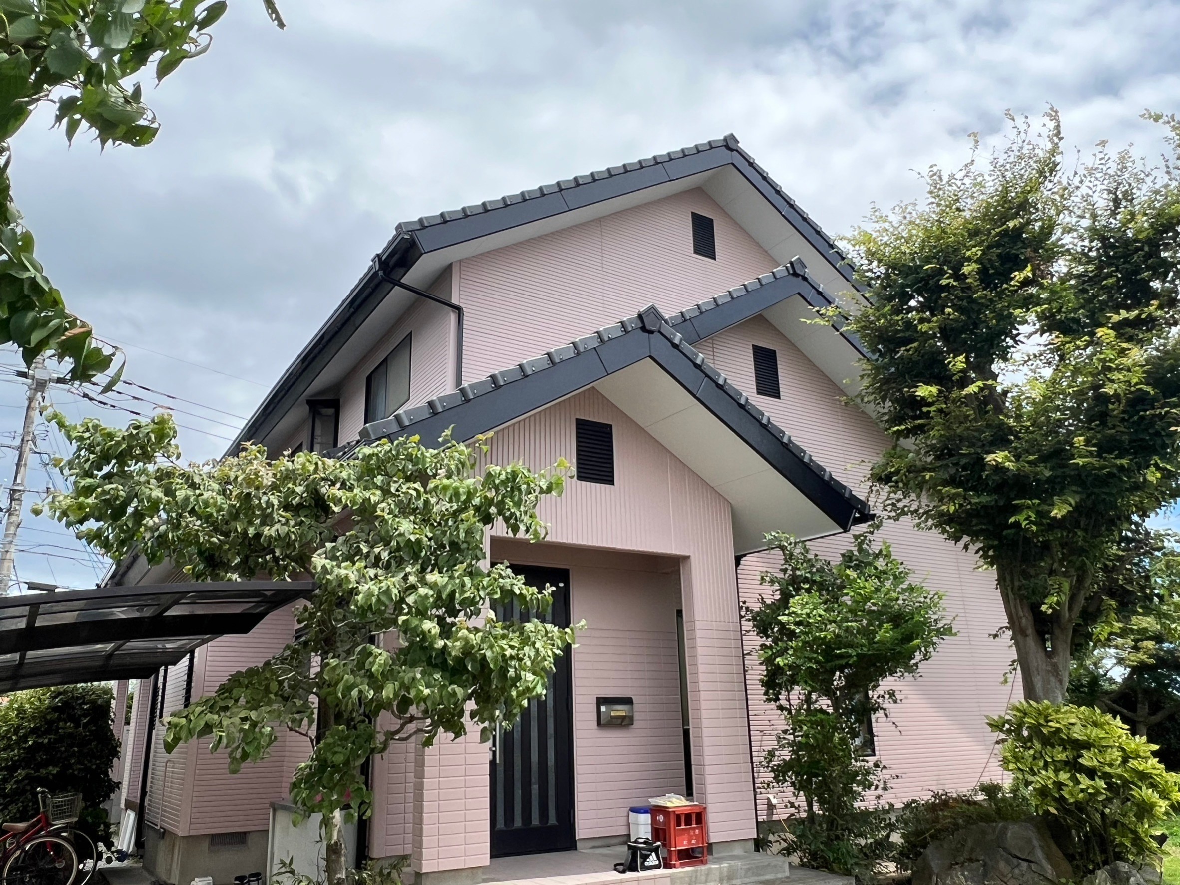 薄いベージュ系の外壁からピンクの外壁に変わり明るく可愛らしい印象に仕上がりました。