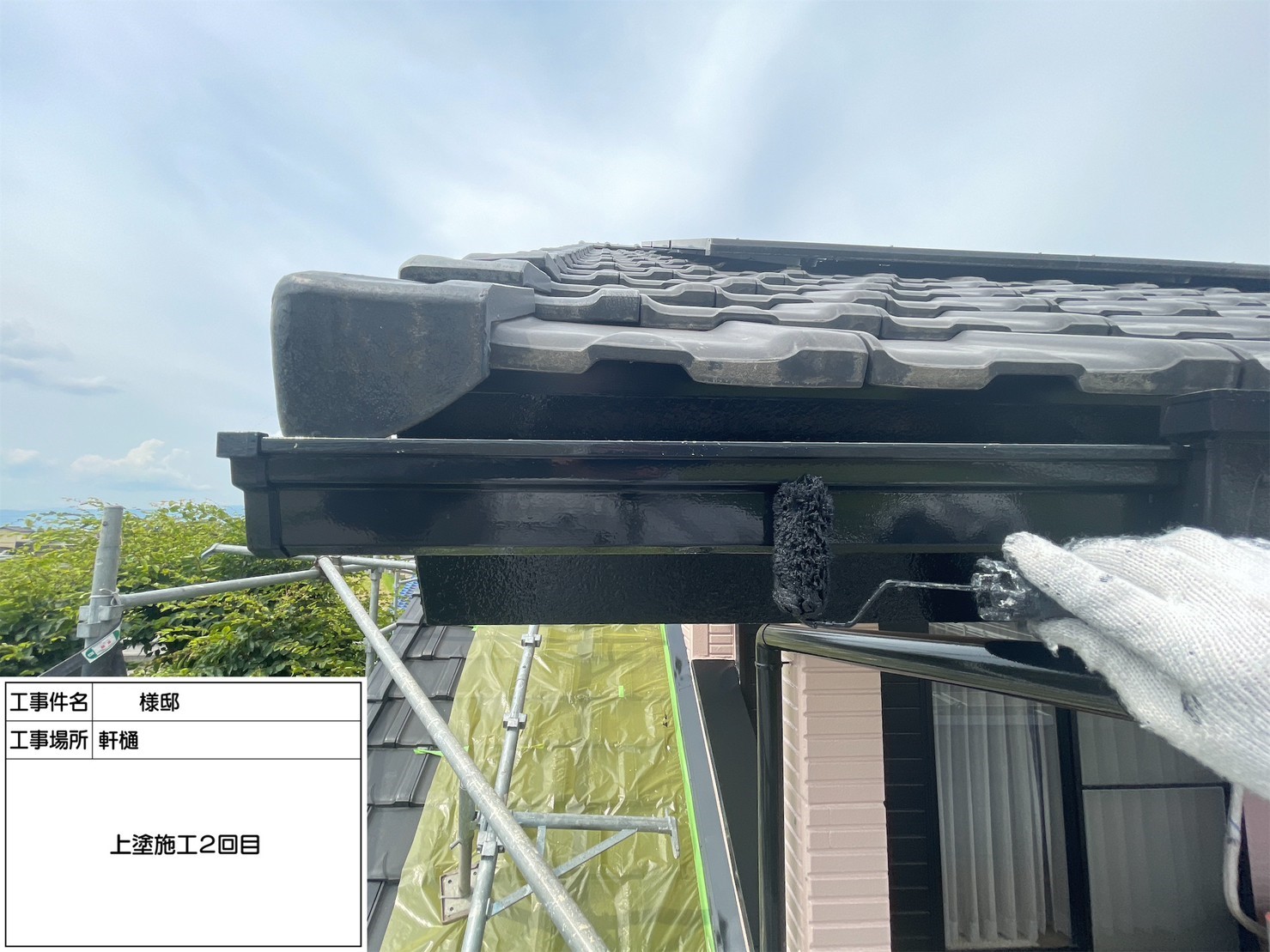 樋や破風にはサビ止めは使用せず2回塗りが行われます。