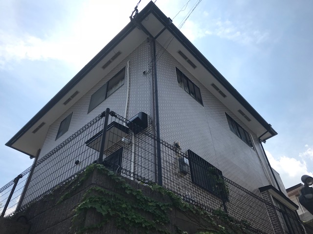 外壁には色あせや汚れの付着が見られ、場所によってはチョーキング現象(塗膜の劣化によって白い粉がつく症状)も発生しておりました。また、屋根も紫外線や雨風の影響で防水性が弱まっている状態でした。こうした症状は見た目以上にお住まいの耐久性に関わってくる大切なサインです。